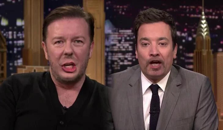 Ricky Gervais y Jimmy Fallon se cambian los labios para cantar un villancico
