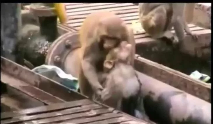 Un mono salva la vida de otro mono electrocutado en las vías de un tren de la India