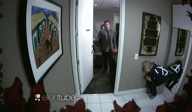 Ellen DeGeneres se esconde en el baño y asusta a Jimmy Fallon