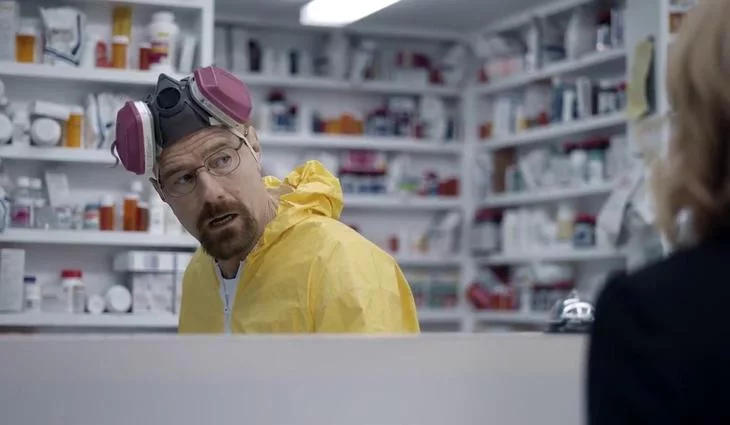 Heisenberg no ha dejado el mundo de las drogas, aunque ahora parece que ahora dentro de la legalidad en el anuncio de Esurance para la Super Bowl 2015.