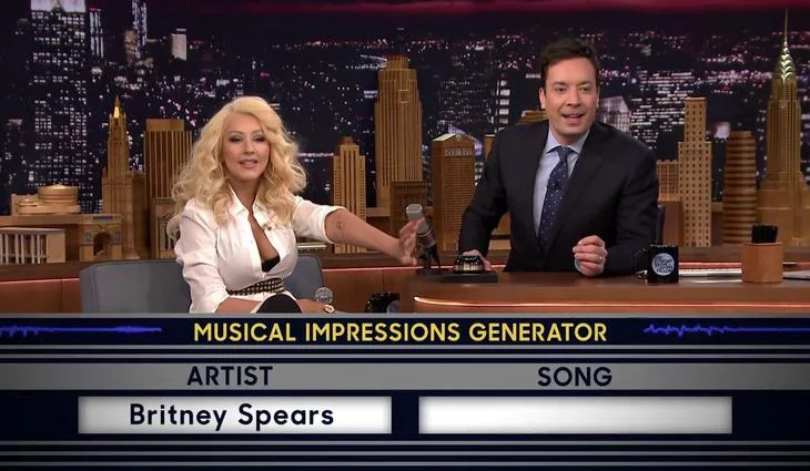 Christina Aguilera imita a Britney Spears, junto a Jimmy Fallon, en 'The Tonight Show'