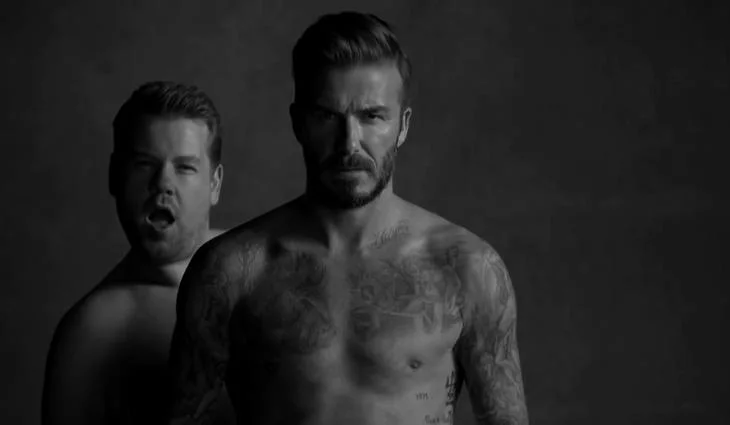 David Beckham parodia sus anuncios de ropa interior con James Corden
