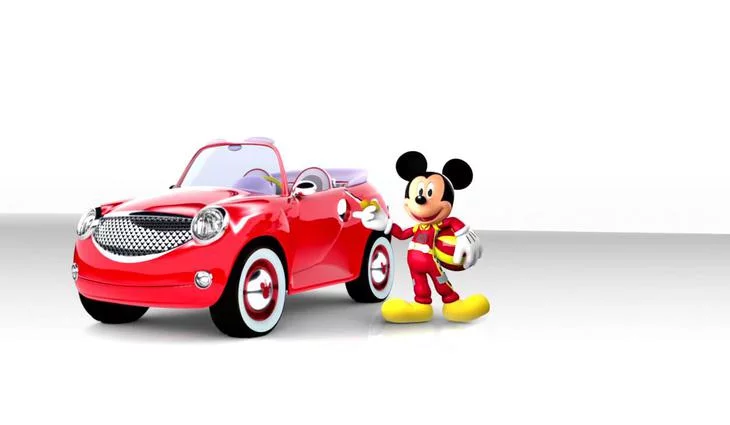 Mickey se sube a su coche de carreras para vivir nuevas aventuras junto a sus amigos.