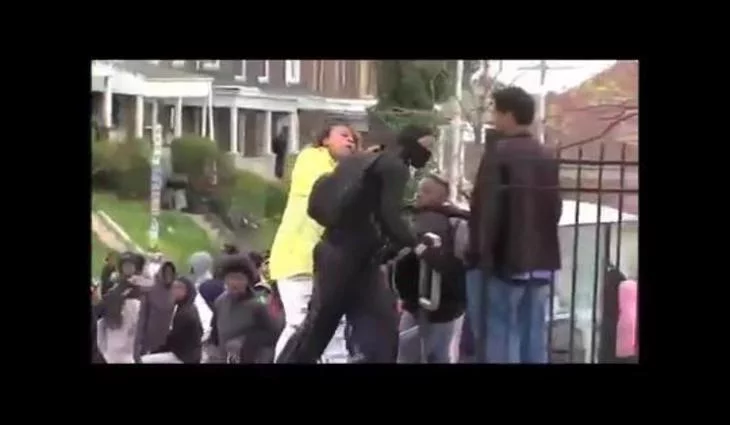 Una madre reconoce a su hijo por televisión en los disturbios de Baltimore y le saca a golpes