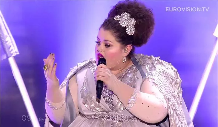 Actuación de la cantante de Serbia, Bojana Stamenov, interpretando el tema "Beauty Never Lies" durante la primera semifinal del Festival de Eurovisión 2015.
