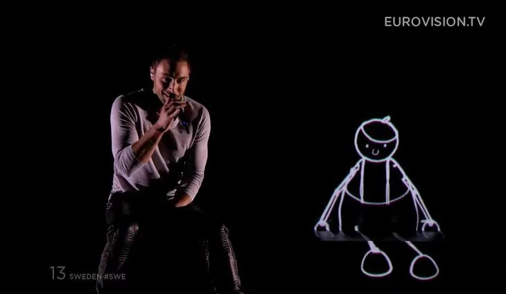 Måns Zelmerlöw canta "Heroes" en representación a Suecia en la segunda semifinal del Festival de Eurovisión 2015.