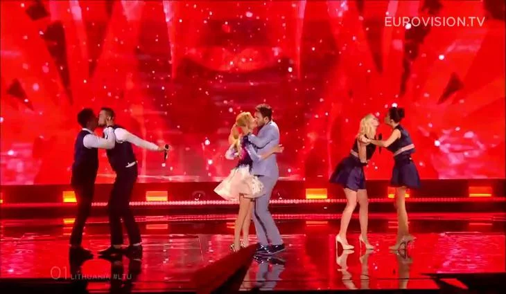 El dúo representante de Lituania en el Festival de Eurovisión 2015, Monika Linkyte y Vaidas Baumila, cantan la canción "This Time".