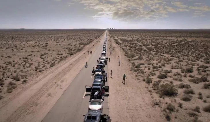 Una gran fila de coches están paradas en mitad de la carretera. Un atasco enorme impide que puedan avanzar hacia su destino, Jarden (Texas). Este lugar es uno de los pocos donde no ha habido ninguna desaparición.