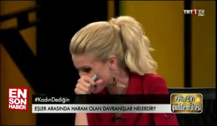 La presentadora Pelin Cift no puede controlar la risa cuando un teólogo explica su punto de vista ante el sexo oral.