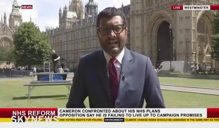 Realizan un truco de magia detrás de un reportero en directo en un informativo