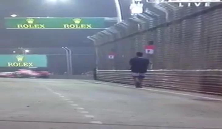 Un espontáneo salta a la pista del GP de Singapur en mitad de carrera