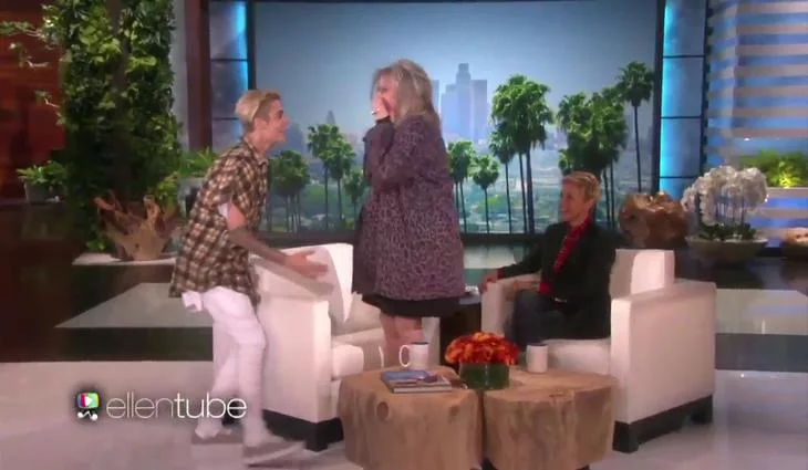 La conocida actriz visitó el programa de Ellen Degeneres y confesó que es belieber, siendo sorprendida en directo por el cantante: "¡Estoy temblando! ¡Es realmente guapo!".