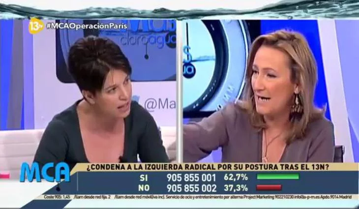 Momento del programa del 18 de noviembre de 2015 donde Beatríz Talegón es expulsada de 'Más claro agua' por su presentadora, Isabel Durán.