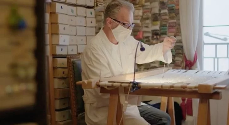 De esta forma se ha podido ver como se creó un abrigo de más de 100 metros de tafeta de seda reciclada y un micro vestido cuajado con 16.308 cristales para el que se emplearon más de 350 horas bordando cada piedra a mano, look completado con unas botas, así como una mascarilla, siguiendo el modelo del vestido.