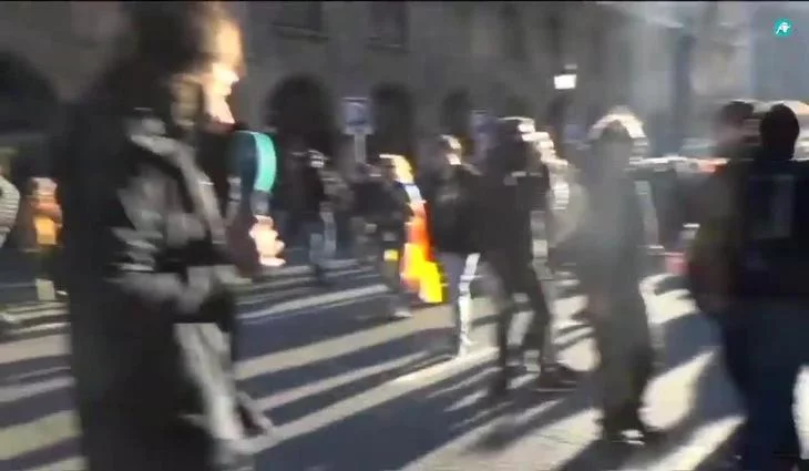 Un manifestante se dirigió a Cake para decirle que "son dos y gracias a nosotros no han seguido, gracias a los que los han separado de vosotros". "¿Pero tú estás contento con lo que acabas de ver ahora mismo?", preguntaba el reportero. "Claro que no, pero si venís a provocar, hay gente que no tiene control", terminaba dejando caer el joven.