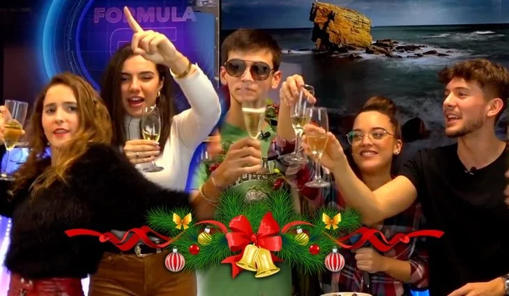 Por este motivo, desde 'Fórmula OT' hemos querido despedir el año con algunos de ellos. Carlos Right, Dave, Marilia, Marta y Noelia, con la aparición especial de María, se convierten en presentadores de las Campanadas al más puro estilo Ramón García, capa incluida. Los chicos nos explican el funcionamiento del famoso reloj, descenso de bola y cuartos incluidos, y se toman las doce uvas a golpe de campanada para después brindar con champán y expresar sus mejores deseos para todos sus seguidores y los usuarios de FormulaTV.
