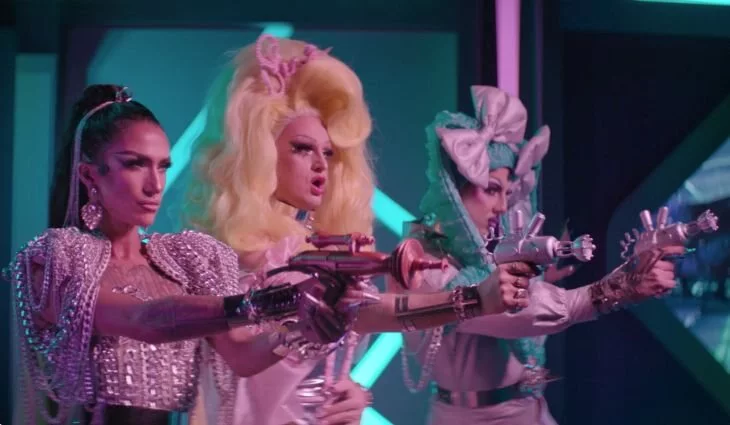 Tras ver cómo Clover Bish quemaba la peluca de Pink Chadora o cómo Kelly Roller y Hornella Góngora estaban pilotando la nave, Bestiah ha desatado el caos al apretar un botón que ha llevado a las reinas a una turbulencia galáctica, que finalmente han superado. Junto a Supremme de Luxe, el tráiler promocional cierra con otra referencia directa a una serie también muy reconocida: 'Dinastía', ya que todos los nombres de las protagonistas del sketch aparecen como si del opening de la ficción de los años ochenta se tratase.