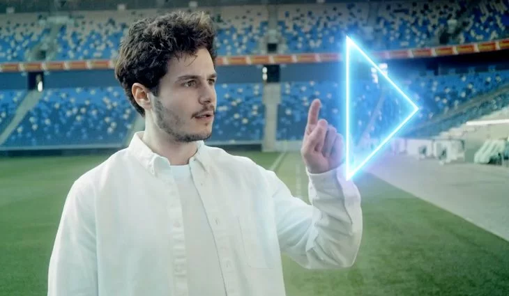 En el caso de Miki, el fútbol es sin duda el elemento dominante en su original postal. Tal y como RTVE avanzó semanas atrás, el catalán iba a estar acompañado de un grupo de "futbolistas" con los que recorrería rincones de todo el país dándoles toques al balón. Y es precisamente lo que vemos en este avance, Miki en un campo de fútbol con este grupo y jugando con un triángulo virtual que sin duda nos recuerda el triángulo de neón del logotipo de Eurovisión 2019.