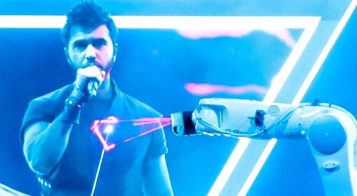 Si España cuenta con su marioneta Paco, Azerbaiyán tiene a dos robots que en todo el primer tramo de la actuación no dejan de jugar con un corazón virtual proyectado sobre el pecho de Chingiz. Paralelamente, la puesta en escena juega con visuales de varias siluetas en tres dimensiones proyectadas sobre el gran pantallón que preside el estadio y sin duda, el momento más inesperado es cuando una "espíritu" digitalmente producido sale del cuerpo del artista y acaba volando al cielo del estadio. En definitiva, una propuesta cuidada, completa y que podría llevarse incluso la eurovictoria.