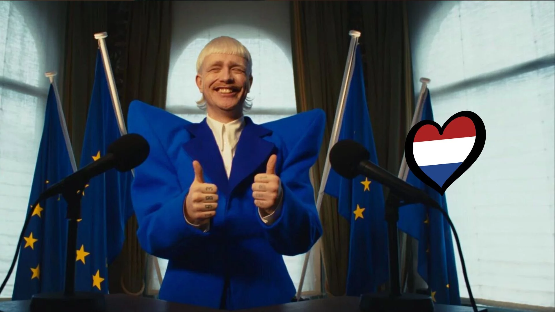 La canción, escrita al completo en neerlandés, es obra del propio Klein y de Donald Ellerström. Con ella, el rapero viajará a Malmö para participar en la segunda semifinal el 9 de mayo de 2024. "Es un honor representar a los Países Bajos y estoy comprometido a darlo todo para lograr el mejor resultado posible", declaró el cantante tras conocer que viajará al certamen.