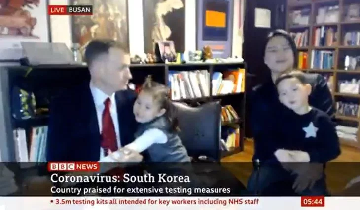 Han transcurrido ya más de tres años desde que la familia de Robert Kelly se convirtiera en viral tras una divertida irrupción. A raíz de la destitución de la Presidenta de Corea del Sur, Park Geun-hye, en 2017, la BBC conectó en directo con este experto en política internacional para que explicara las posibles consecuencias de este escándalo. Pero, cuando el político se encontraba analizando la decisión de los tribunales desde su hogar, sus dos hijos pequeños entraron en la habitación reclamando su atención y generando un alboroto considerable. Segundos después, entró su mujer para llevarse a los niños y permitir retomar la conexión a su marido, que pidió disculpas por tal situación.