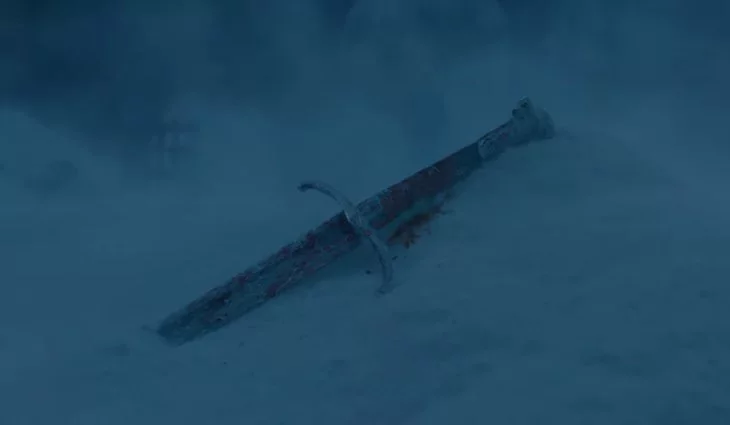 Sin embargo, el mensaje está claro. El enclave estratégico de los Stark está muy cerca de quedar reducido a un fuerte inhabitado. El vídeo muestra los pasillos y las plazas de Invernalia totalmente exentos de vida, e incluso podemos ver la silla de ruedas de Bran estampada contra el suelo. Pero realmente lo más chocante es la aparición de la espada de Jon clavada en la nieve, mientras una silueta se aleja tras la gélida niebla.