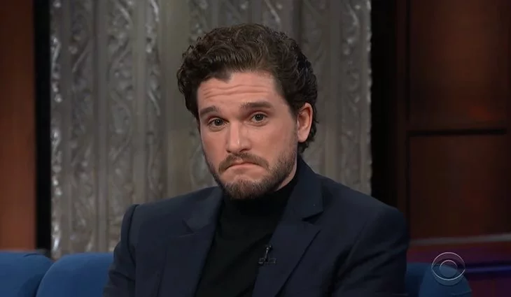 La entrevista sirvió para hacer un repaso de la imagen física del actor desde que se embarcó en el proyecto hace una década hasta ahora, que se ha convertido en uno de los principales estandartes de la popular ficción. Colbert, consciente de que no podía extraerle información a Harington acerca del inminente desenlace de Jon Nieve y todos sus compañeros, decidió interrogarle desde el absurdo más hilarante.
