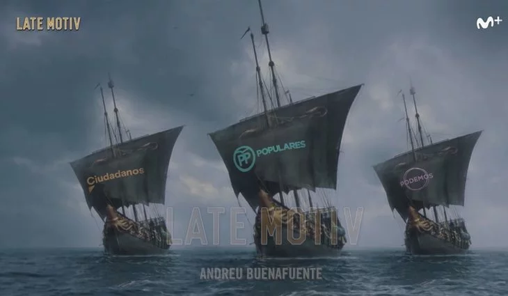 'Late Motiv', el programa de Andreu Buenafuente en Movistar+, ha aprovechado la coyuntura entre la precampaña electoral y el lanzamiento del tráiler de 'Juego de Tronos' para lanzar su propio vídeo, titulado "Juego de Votos". Las Elecciones Generales se celebran el próximo 28 de abril, mientras que la ficción de HBO vivirá el estreno el día 14 del mismo mes. El montaje en cuestión muestra a los personajes de la serie con las caras de los políticos españoles que se presentan como cabeza de lista de los "principales partidos" en los comicios electorales.