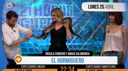 Amaia Salamanca agarra una serpiente y convierte a 'El hormiguero' en "Minuto de oro"