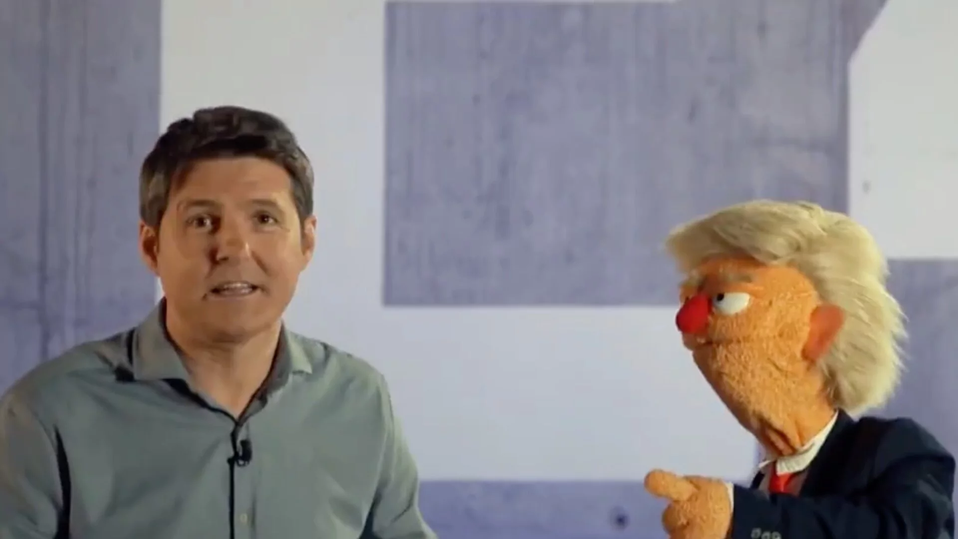 Junto al presentador aparece el teletrapo de Donald Trump, uno de los muñecos del programa que buscarán traer a nuestra televisión el espíritu crítico de los guiñoles franceses. "¿Yo también puedo estar en 'Bad Tongues'?", pregunta el títere. "Make La 2 great again", expresa el teletrapo, versionando el conocido eslogan "Make America great again" de campaña del presidente norteamericano.