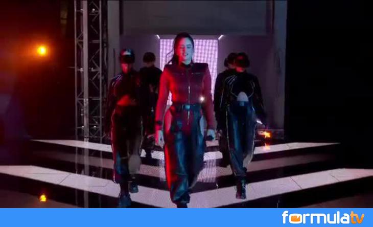 La cantante comenzó su número en la parte trasera de un camión, emulando la estética de sus videoclips. Mientras avanzaba hacia el centro del escenario, un cuerpo de baile se sumaba y le acompañaba con una coreografía que evidenciaba la fusión flamenca, pop y urbana de la que hace gala Rosalía. Por si esto fuera poco, el vestuario de los bailarines, con parte de su cuerpo al aire, era muestra más que suficiente para demostrar que este no es el flamenco que nos enseñaron cuando éramos pequeños.