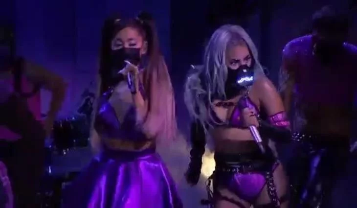 Durante su actuación musical, de más de nueve minutos de duración, realizó un medley de algunos de sus últimos temas. "Enigma", "Chromatica II" y "911" sonaron sobre un escenario en el que se había grabado previamente. Los cortes evidenciaron que el número no era en directo pero se compensó con cambios de vestuario y una estética más propia del teatro musical que de conciertos. El momento más esperado llegó con la irrupción de Ariana Grande, con la que cantó y bailó su colaboración "Rain on Me".