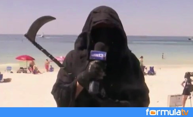 La reportera de WMBBTV News 13 se ha desplazado hasta una de las playas de Florida para informar de la situación que se vive allí después de que hayan sido reabiertas al relajarse las normas del confinamiento. Lo que ella no se esperaba es que acabaría dando paso, ni más ni menos, que a la muerte. Realmente se trata de un abogado llamado Daniel Uhlfelder que se ha disfrazado así para recorrer las playas de Florida mientras critica el levantamiento de las restricciones viendo que la gente no respeta las medidas de distanciamiento.