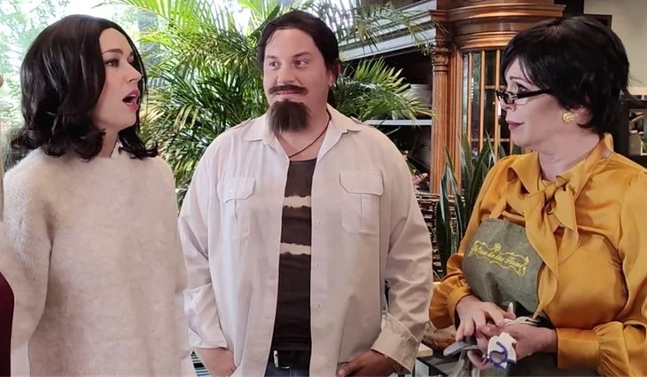 El equipo del formato va a grabar un sketch de 'La casa de las flores' y FormulaTV ha visto en exclusiva cómo se preparan, desde la sala de maquillaje hasta los ensayos. Primero vemos a Ángel Martín, que al preguntarle qué personaje va a interpretar en esta parodia dice que no lo sabe, "no veo la serie", aunque sí que acaba desvelando que va a hacer de "Paco León" como se verá luego con la peluca rubia. Por su parte, Patricia Conde se mete en la piel de Paulina de la Mora y José Lozano interpreta al Cacas. Además, en esta entrega del programa hace un cameo la actriz Belinda Washington vistiendo igual que Virginia de la Mora para la imitación que se emitirá próximamente Movistar+ y que promete regalarnos muchas risas.