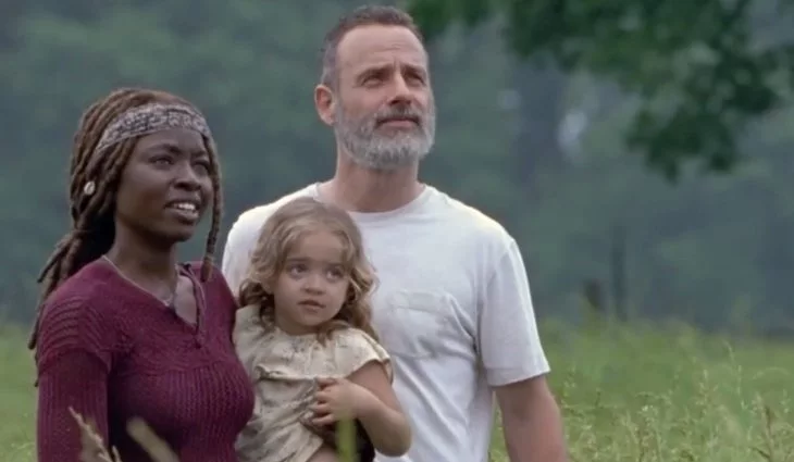 Su personaje, Rick Grimes, es lógicamente uno de los protagonistas de estos minutos de metraje. Por lo que nos muestra el avance, tras el violento final de la octava temporada, ahora tiene una pose más contemplativa junto a Michonne y Judith. El salto temporal entre ambas temporadas es de 18 meses, una franja de tiempo en la que se ha superado la época en la que Negan campaba a sus anchas y se ha tratado de dotar de mayor estabilidad a las comunidades de supervivientes circundantes. Como era de esperar, Daryl también hace acto de presencia con su ballesta y su icónica moto.
