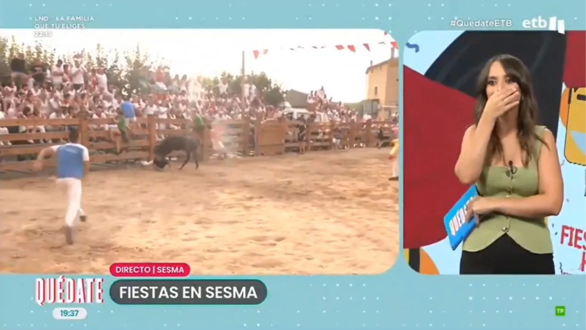 Desde el plató, la presentadora Leire Torre reaccionaba entre nervios y preocupación: "¡Ay, ay, ay! ¡Ay, Xabier!", exclamó mientras el reportero trataba de esquivar al animal. Pese al susto, Eguía logró levantarse sin daños de gravedad y refugiarse junto a las tablas, sin soltar el micrófono en ningún momento.
