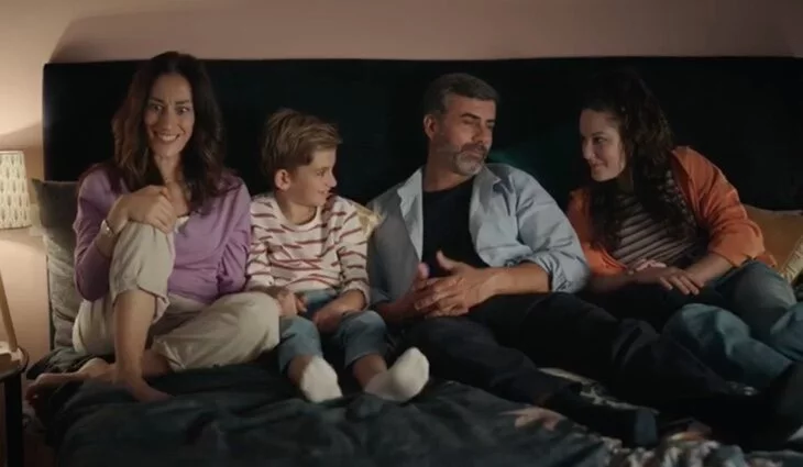 En el spot se observa la noche de una familia corriente cuando la madre llega de trabajar. En casa se encuentra a su hija hablando por teléfono con una amiga, el hijo que juega con la abuela con unas gafas de realidad aumentada y a su marido enfadado mientras prepara la cena. Tras una ducha, toda la familia se reúne ante el televisor a ver Telecinco.