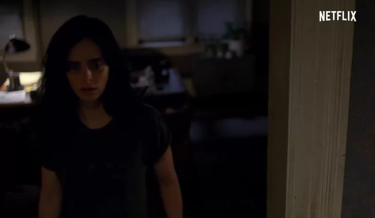 El pasillo que lleva al piso que sirve de hogar y al tiempo de oficina de Investigaciones Alias nunca ha tenido un aspecto tan siniestro como en este avance de la tercera temporada de 'Jessica Jones'. En él, una voz comienza a describirnos a la protagonista que da nombre a la serie como "fraude" y "tramposa", antes de que su propia figura, encarnada una vez más por Krysten Ritter, aparezca temerosa al otro lado de la puerta. Entonces se suceden unas rápidas imágenes que nos muestran una misteriosa figura envuelta en un halo rojo que parece ser el propio villano intercalado con fotos de la propia Jessica Jones en una situación parece que desesperada. Los tonos rojos permanecen incluso en el logo de la serie, que cambia su habitual morado por este nuevo color.