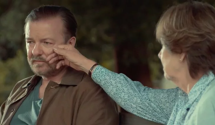 A lo largo del avance se muestra en repetidas ocasiones esa actitud de hastío del personaje de Gervais, Tony, que está tocando fondo tras la muerte de su esposa, cuya voz podemos escuchar en off durante buena parte del vídeo, tratando de aconsejar a su media naranja de que supere cuanto antes su inevitable desaparición. Sin embargo, Tony no tiene pensado dejar el duelo atrás en el futuro cercano, por eso considera algo extraordinario poder hacer y decir lo que le da la gana, tener esa cierta liberación de ser alguien que cree haber perdido todo lo que le importaba.