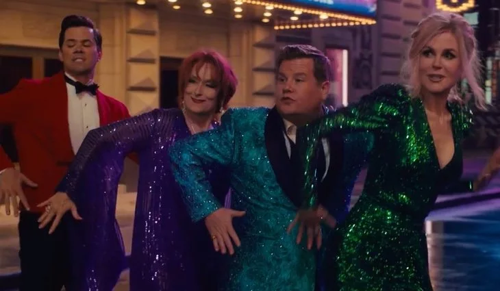 En el adelanto nos encontramos con un elenco plagado de estrellas, entre las que destacan Meryl Streep, James Corden, Nicole Kidman y Andrew Rannells. Los dos primeros interpretan a Dee Dee y Barry, dos estrellas del mundo teatral que ven hundida su reputación cuando su última producción fracasa estrepitosamente. Es entonces cuando encuentran la oportunidad perfecta para relanzar sus carreras: ayudar a una adolescente de Indiana a la que han impedido acudir al baile de graduación junto a su novia. Los dos artistas ven ese conflicto una cruzada para la que reclutan a Angie (Kidman) y Trent (Rannells), otras dos figuras del teatro que no se encuentran en su mejor momento.