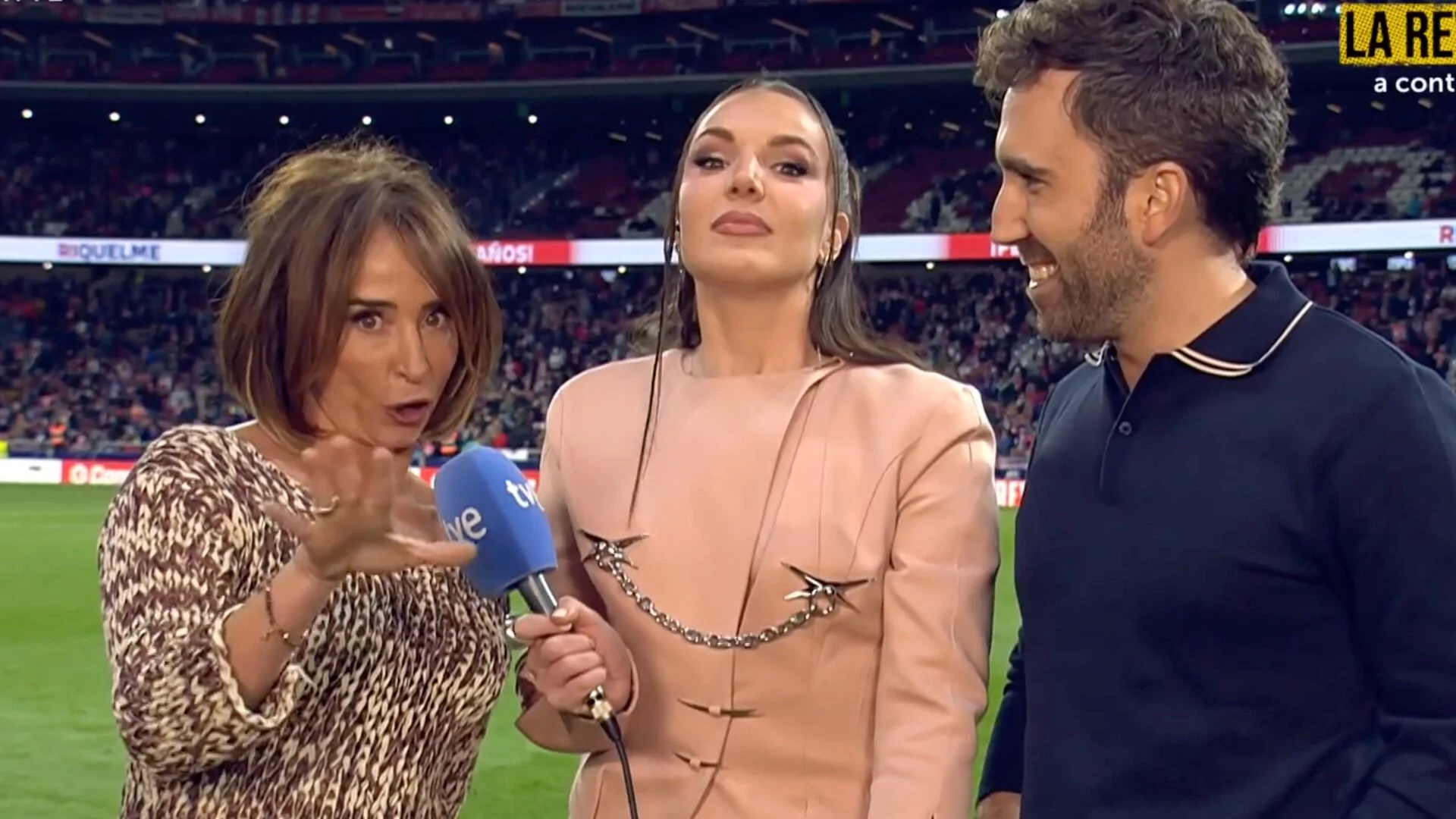 A continuación, daban paso a María Patiño, Inés Hernand y Aitor Albizua, que se encontraban a pie de campo. "Nos sentimos como la 'Beyonsebe', Kendrick Lamar y la mismísima Lady Gaga aquí en el half-time de un partido tan importante para todo el mundo que lo esté viendo desde casa", comentaba con su habitual humor la creadora de contenido. "Yo encantada porque me he desvirgado en un partido de fútbol en directo con Televisión Española y en el Wanda. El mejor estreno, aunque el mejor estreno está por venir", aseguraba la que fuera presentadora de 'Ni que fuéramos Shhh'.